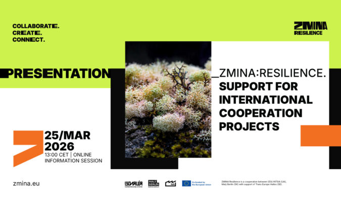 ZMINA:Resilience is a programme supporting international cooperation projects between organisations from Creative Europe participating countries, including one partner from Ukraine. The programme aims to develop and showcase projects that build resilience, foster co-creation across borders, and generate new visions through international cultural collaboration.